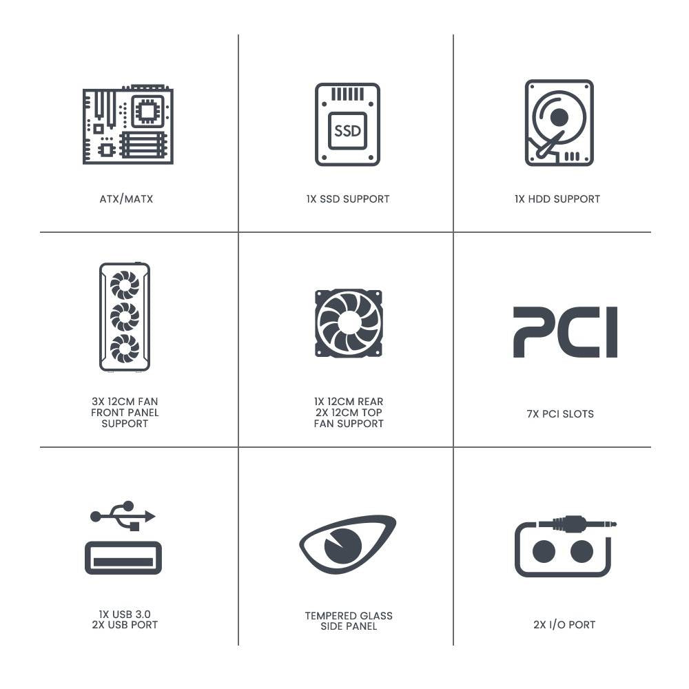 • Θάλαμος PSU: Υποστηρίζει 2 x 120mm Ανεμιστήρες (Ανεμιστήρες και Ψυγείο δεν περιλαμβάνονται)