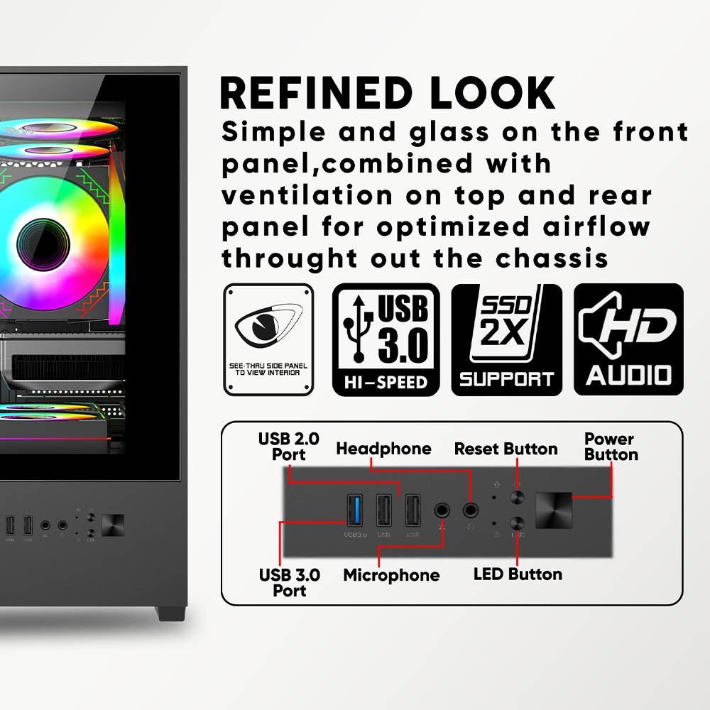 • Υποστήριξη έως 5 × 120mm ανεμιστήρες