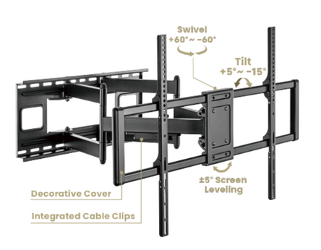 Τοποθετήστε την τηλεόρασή σας σε τέλεια θέση με αυτήν την ανθεκτική βάση τοίχου πλήρους κίνησης, ιδανική για μεγάλες οθόνες από 60" έως 120". Ο διπλός βραχίονας και ο ελαφρύς, ευέλικτος σχεδιασμός επιτρέπουν μέγιστη προσαρμογή, εξασφαλίζοντας βέλτιστη γωνία θέασης σε κάθε περιβάλλον.