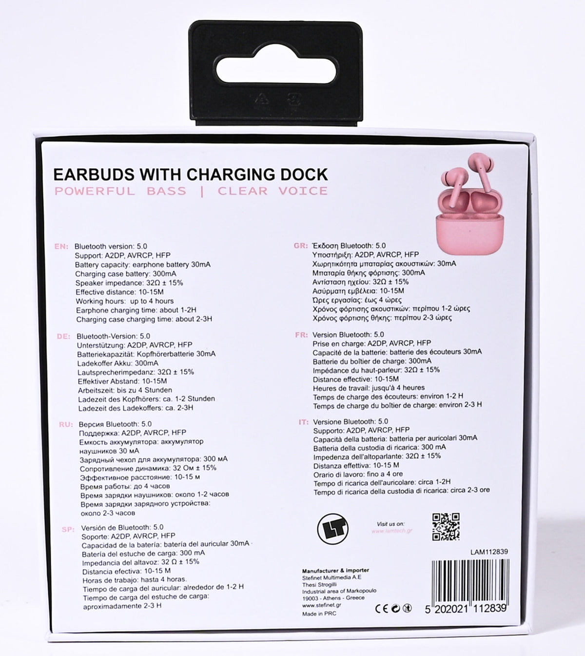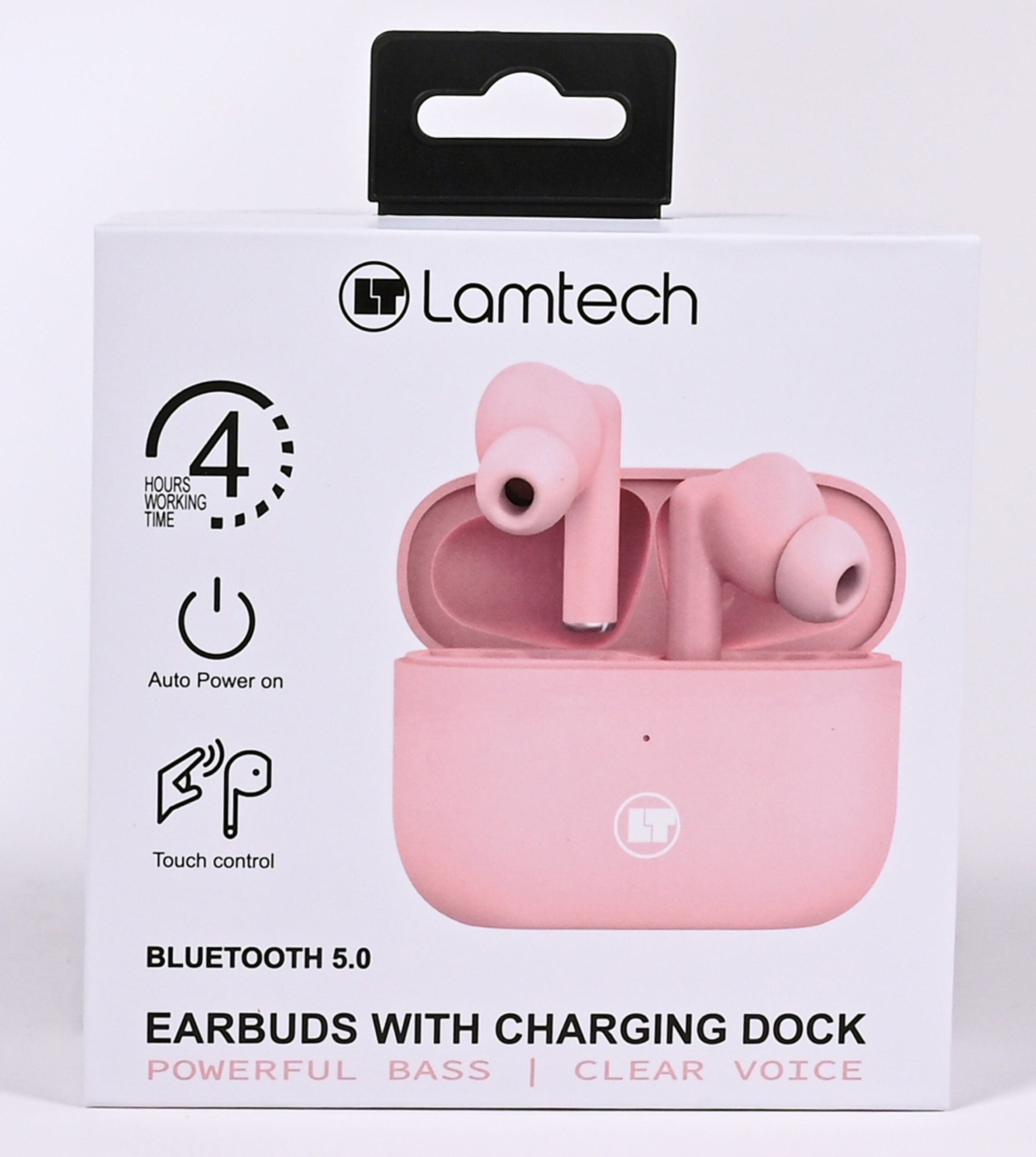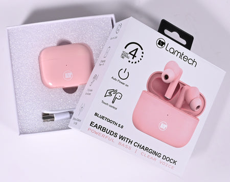 Lamtech Bluetooth 5.0 Tws Earphones With Charging Dock Pink