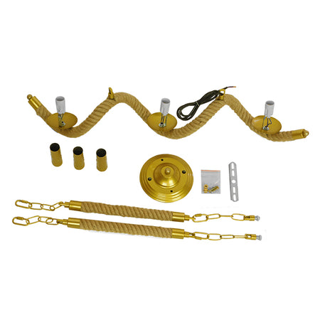 GloboStar® LUXOR 01598 Vintage Κρεμαστό Φωτιστικό Οροφής Τρίφωτο Χρυσό Μεταλλικό με Μπεζ Σχοινί Μ75 x Π13 x Y18cm