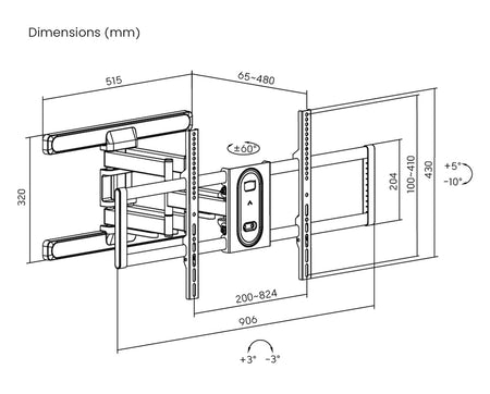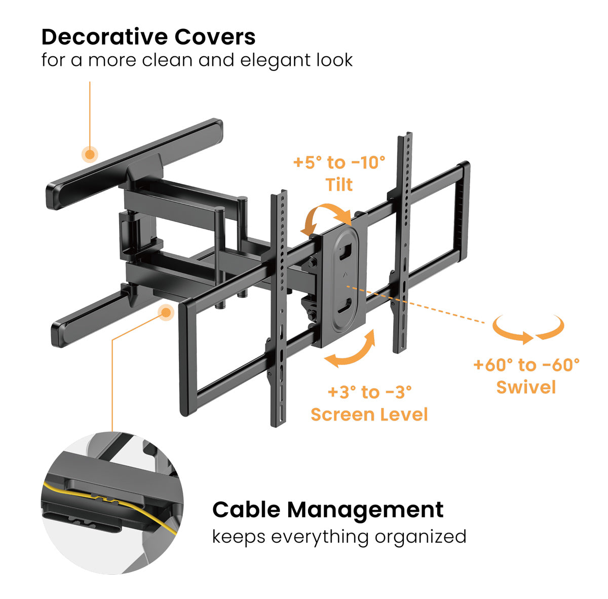 POWERTECH επιτοίχια βάση τηλεόρασης PT-1280, 43-100", έως 60kg, full motion