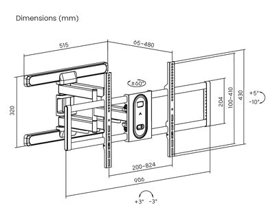 POWERTECH επιτοίχια βάση PT-1280 για τηλεόραση 43-100", full motion, 60kg