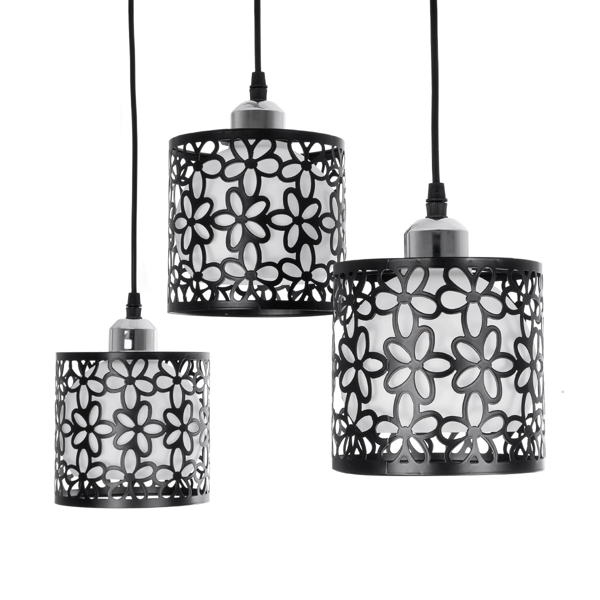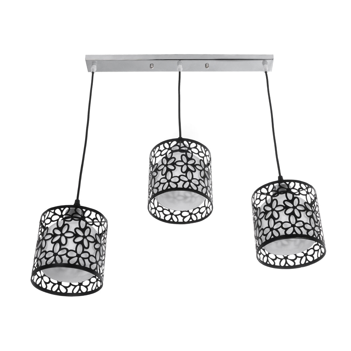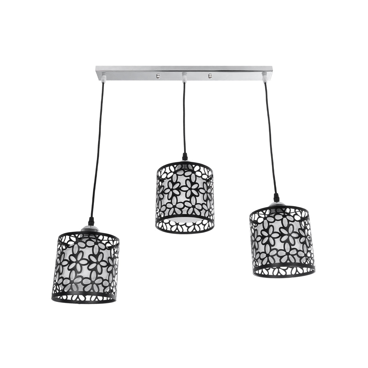 GLOBOSTAR® RAINELDA 01247 Μοντέρνο Κρεμαστό Φωτιστικό Οροφής με Ντουί 3 x E27 AC 220-240V IP20 - Μαύρο & Λευκό - Μ60 x Π15 x Υ19cm