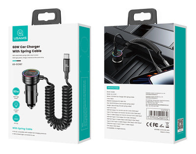 USAMS φορτιστής αυτοκινήτου US-CC167 με καλώδιο, USB/USB-C, 60W, μαύρος