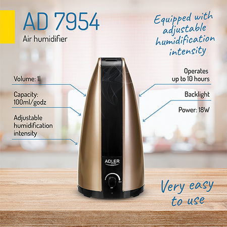 Ένας αθόρυβος και πολύ αποτελεσματικός υγραντήρας αέρα. Είναι ιδιαίτερα χρήσιμο σε γραφεία ή σε αίθουσες συνεδριάσεων. Είναι πολύ βολικό και καταλαμβάνει πολύ λίγο χώρο. Αυτός ο υγραντήρας αέρα με ισχύ 18W μπορεί να λειτουργήσει ακόμη και 10 ώρες με απόδοση 100ml ανά ώρα. Είναι επίσης εξοπλισμένο με ρυθμιστή της έντασης της εργασίας του.