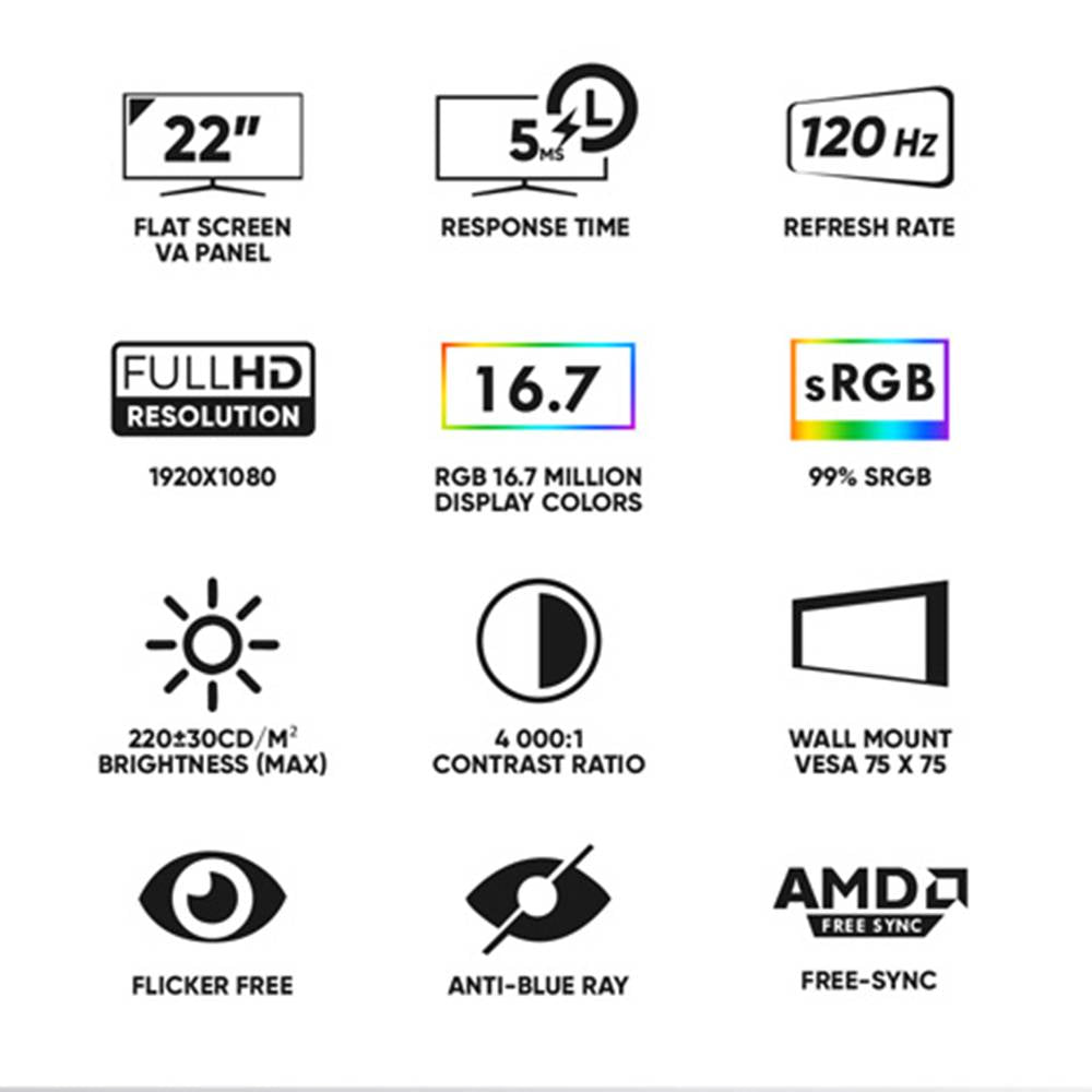 ARMAGGEDDON GAMING MONITOR 22' PIXXEL+ PRO SERIES SUPER 120 BLACK