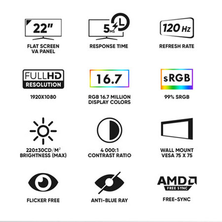 Η ARMAGGEDDON PIXXEL+ Pro Series SUPER 120 είναι μια gaming οθόνη 22 ιντσών Full HD, σχεδιασμένη για ομαλό gameplay, υψηλή αντίθεση και ακριβή χρώματα. Με VA panel, ρυθμό ανανέωσης 120Hz και υποστήριξη AMD FreeSync, προσφέρει καθαρή εικόνα χωρίς tearing και stuttering.