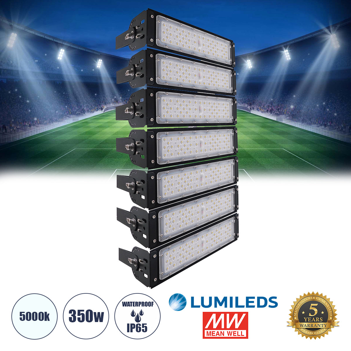 GLOBOSTAR® GOLIATH 90100-7 Προβολέας για Γήπεδα Tennis & Ποδοσφαίρου 5x5 LED 350W 52500lm 75°x135° SDCM<5 Fish Eye Lens AC 220-240V Αδιάβροχο IP65 IK08 Φυσικό Λευκό 5000K - Lumileds SMD Chip & Mean Well Driver - Μαύρο Ματ - Μ32 x Π12 x Υ63cm - 5 Χρόνια...