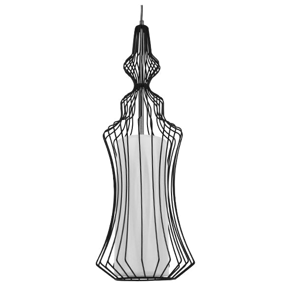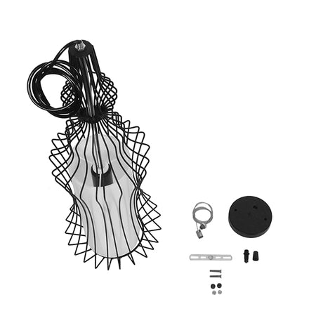 GloboStar® LILY 01559 Vintage Industrial Κρεμαστό Φωτιστικό Οροφής Μονόφωτο Μαύρο Μεταλλικό Πλέγμα και Υφασμάτινο Εσωτερικό Καπέλο Φ18 x Υ65cm