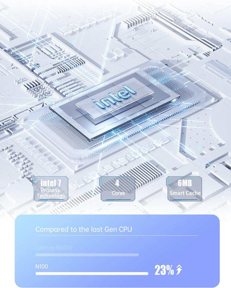 -Επεξεργαστής: Intel N100 Processor, 4 Cores/4 Threads (6M Cache, up to 3.4 GHz)
