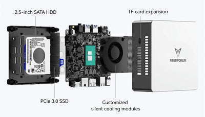 MINISFORUM mini PC UN100L, Intel CPU N100, 16/512GB SSD, Windows 11 Pro
