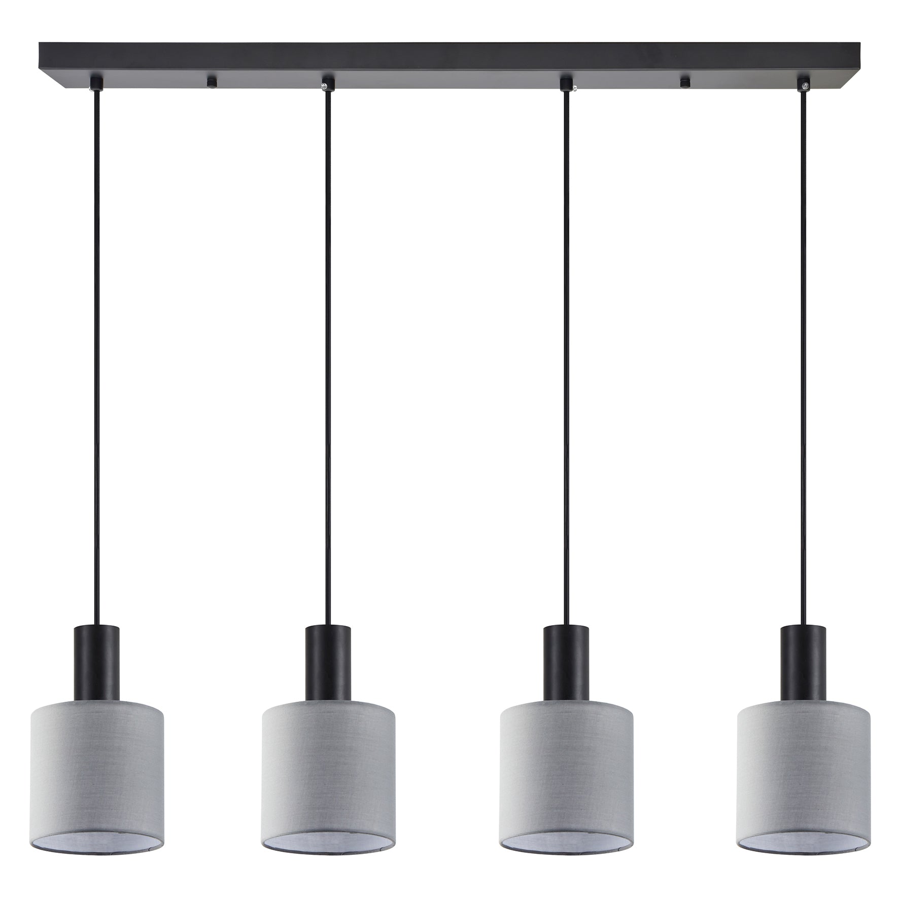 SE21-BL-4-4BL-SH2 ADEPT TUBE Black Pendant Grey Fabric Shade+