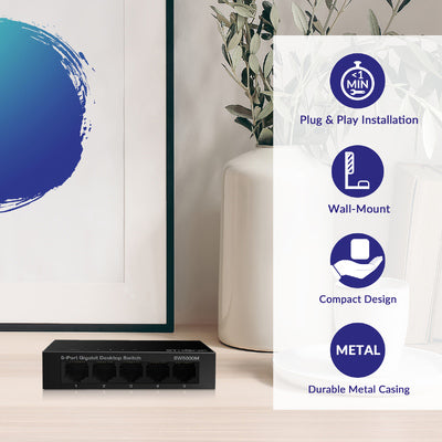 -Ethernet Ports: 5x Gigabit RJ45 Ports 10/100/1000 Mbps, Support Auto MDI/MDIX