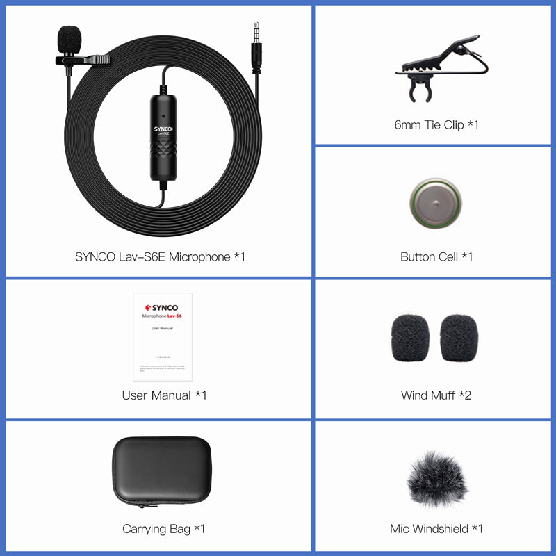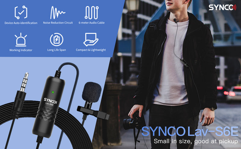 SYNCO μικρόφωνο Lav-S6E με clip-on, omnidirectional, 3.5mm, 6m, μαύρο