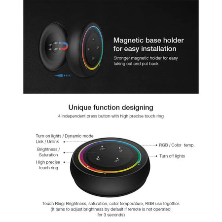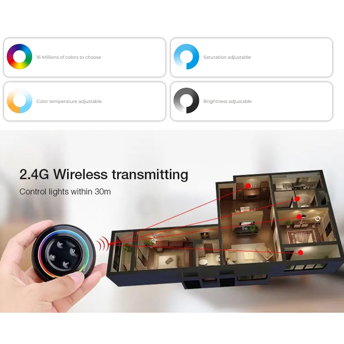 71434 S2-B Mi-Light Wireless Touch Controller RF 2,4 GHz für alle RGBW+WW Mi-BOXER Controller DC 3 V 2 x AAA – IP20 Schwarz Φ7 x H2,5 cm – 5 Jahre Garantie