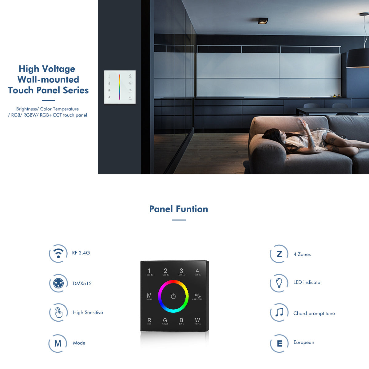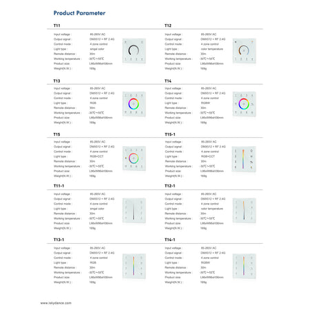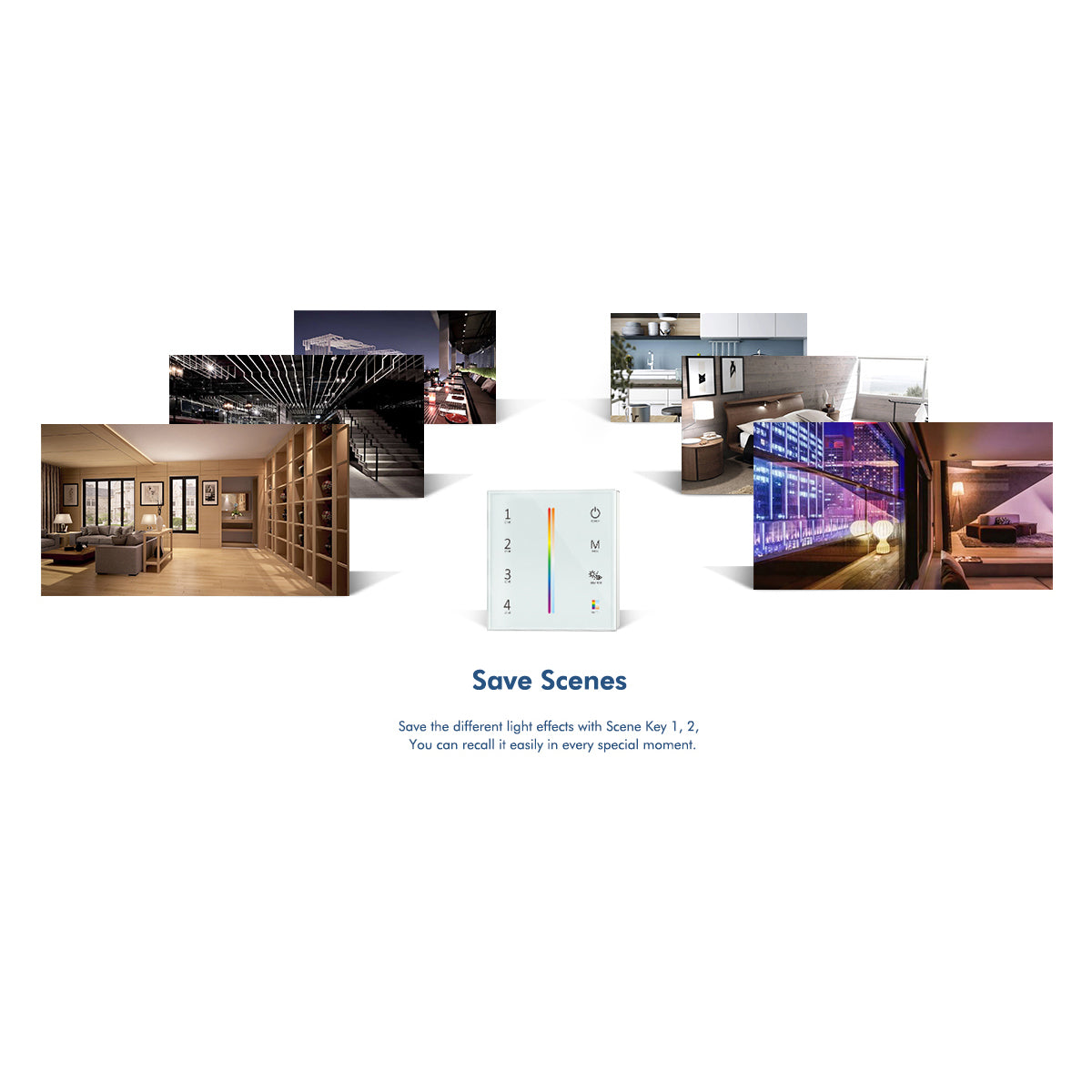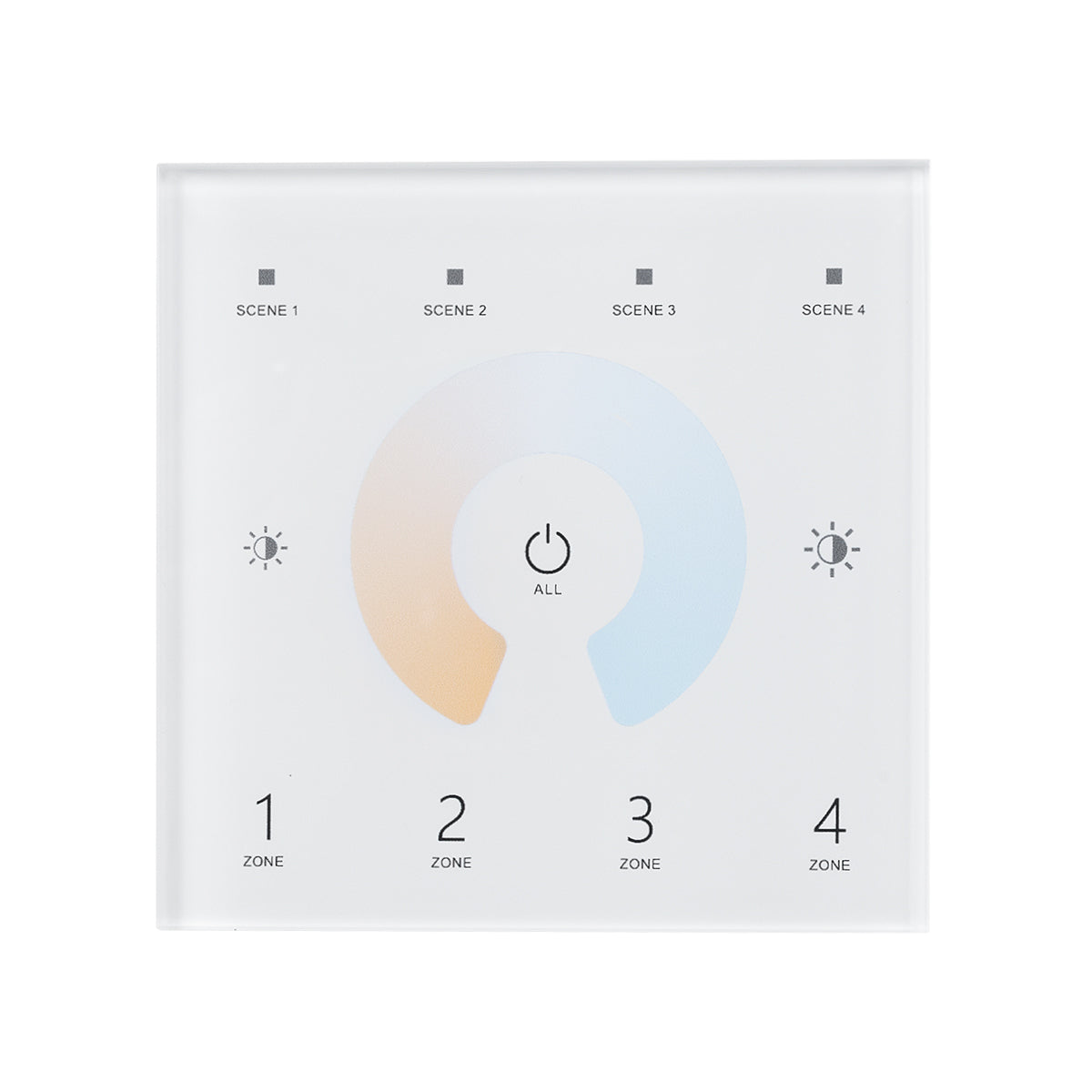 73160 T12 SKYDANCE Wireless DMX512 Wandcontroller RF 2,4 GHz 4 Gruppen für alle SKYDANCE DMX512 Controller AC 100–240 V Max. 0,1 A – IP20 M8,5 x B8,5 x H3,5 cm – 5 Jahre Garantie