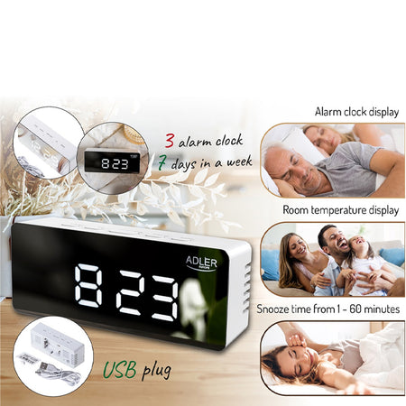 Adler Led Alarm Clock White