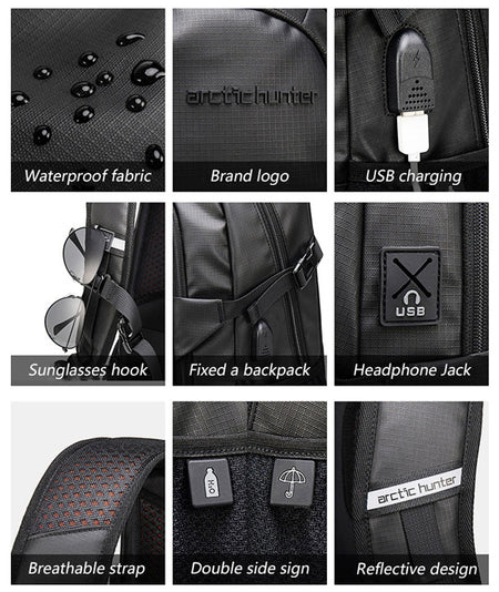 ARCTIC HUNTER τσάντα πλάτης B00387 με θήκη laptop 15.6", 26L, USB, μαύρη