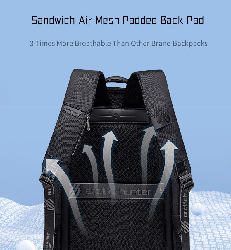 ARCTIC HUNTER τσάντα πλάτης B00492-1 με θήκη laptop 15.6", 22L, μαύρη