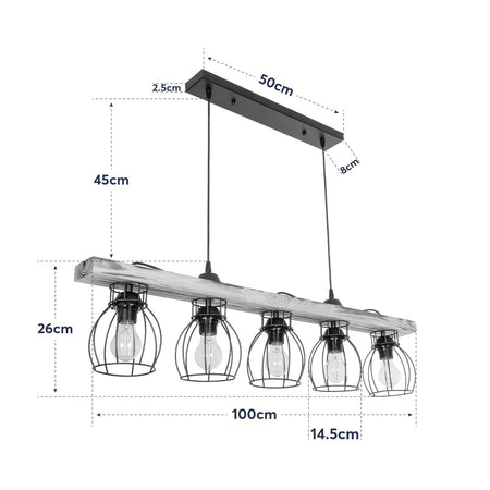 GLOBOSTAR® BARISTA 203-0095 Vintage Κρεμαστό Φωτιστικό Οροφής με Ντουί 5 x E27 AC 220-240V IP20 - Μπεζ & Μαύρο - Μ100 x Π14.5 x Υ26cm