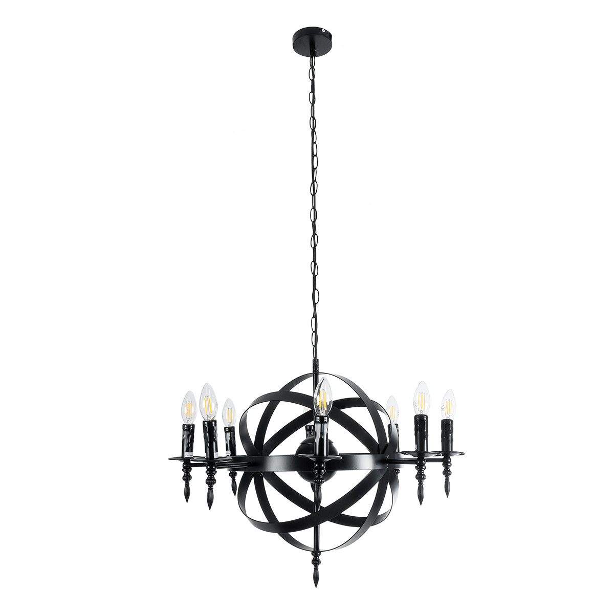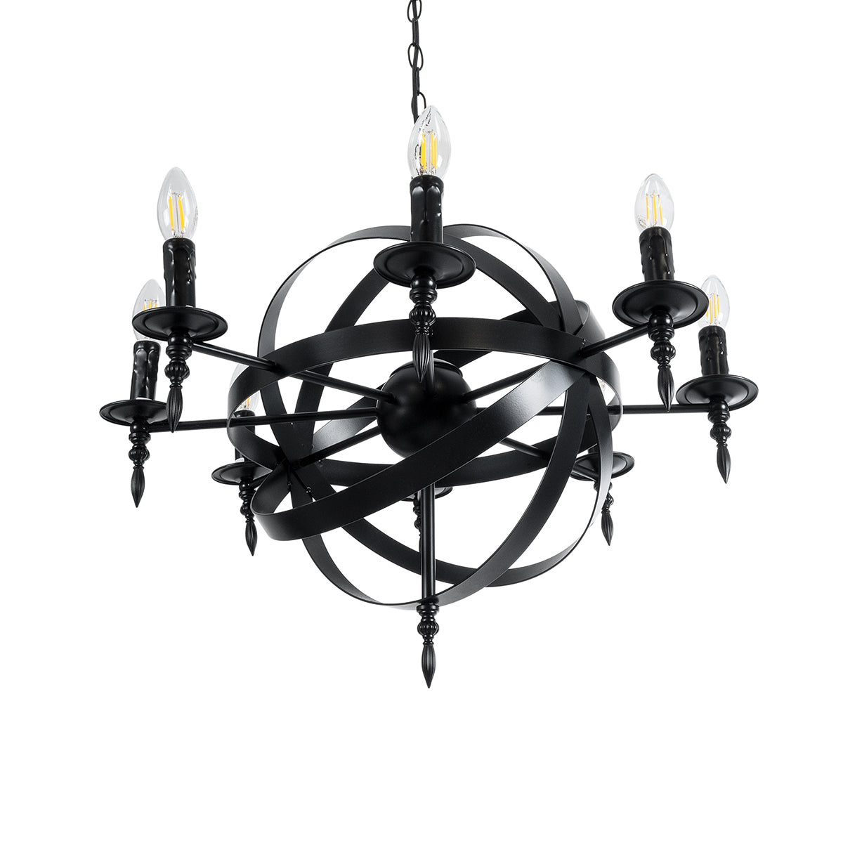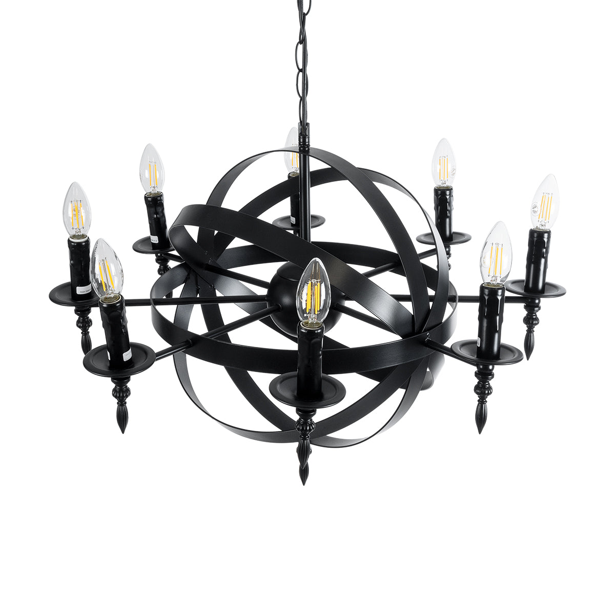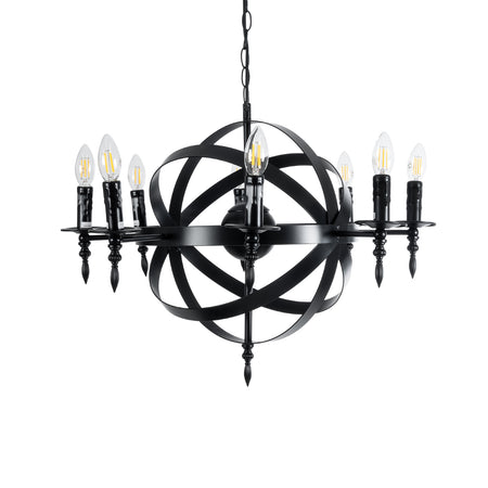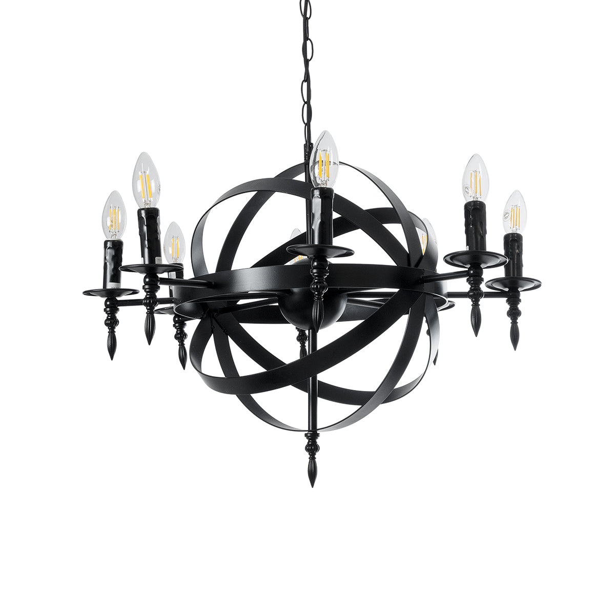 GLOBOSTAR® ESTELLE 01003 Vintage Κρεμαστό Φωτιστικό Οροφής με Ντουί 8 x E14 AC 220-240V IP20 - Μαύρο - Μ65 x Π65 x Y50cm