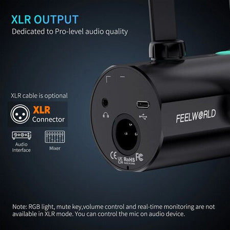 Feelworld PM1-AS Dynamic XLR/USB Microphone with Boom Arm Stand Black