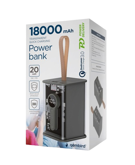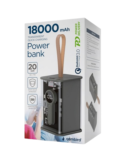 Gembird Transparent Qc3.0 Quick Charging Power Bank 18000 Mah Black