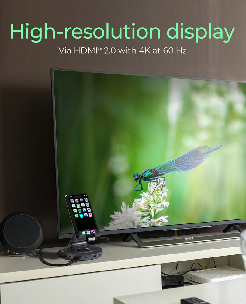 • Υψηλή Ανάλυση: Η ενσωματωμένη θύρα HDMI® 2.0 υποστηρίζει αναλύσεις έως 4K στα 60 Hz, ιδανική για πολυοθονικούς χώρους εργασίας ή ρυθμίσεις ψυχαγωγίας.