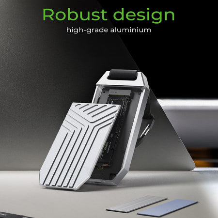 Η θήκη είναι κατασκευασμένη από υψηλής ποιότητας αλουμίνιο, προσφέροντας εξαιρετική αντοχή, απαγωγή θερμότητας και σταθερή απόδοση του SSD κατά τη μακροχρόνια χρήση.