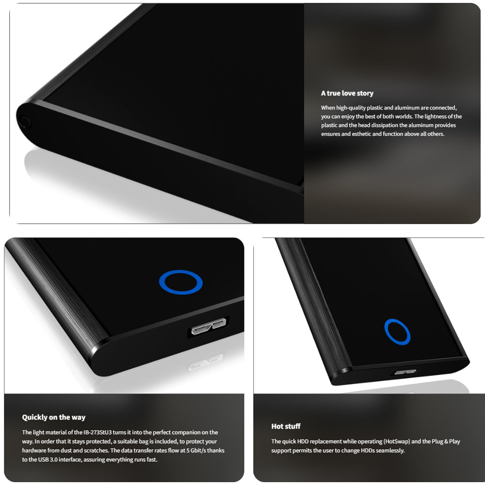 Το ελαφρύ IB-273StU3 αποτελεί τον ιδανικό σύντροφο στο ταξίδι. Περιλαμβάνει προστατευτική θήκη που διαφυλάσσει τον εξοπλισμό σας από σκόνη και γρατσουνιές. Με τη διασύνδεση USB 3.0, η ταχύτητα μεταφοράς δεδομένων φτάνει τα 5 Gbit/s, διασφαλίζοντας ότι όλα λειτουργούν γρήγορα και αποτελεσματικά.