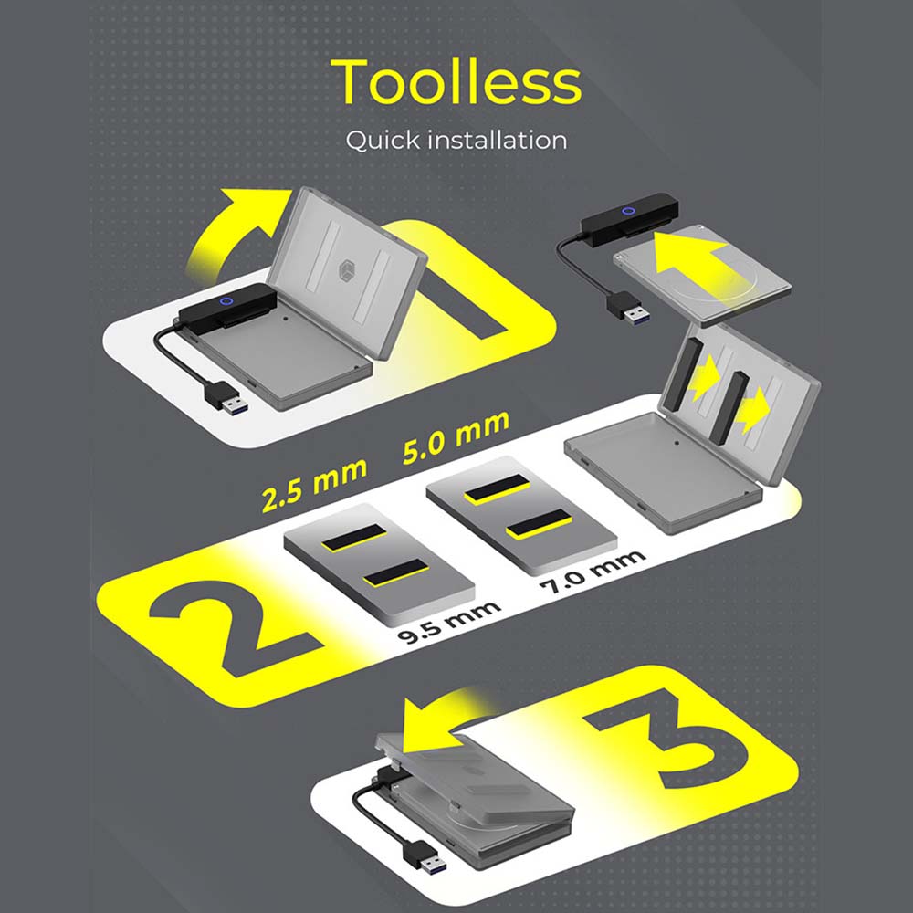 • Γρήγορη Μεταφορά Δεδομένων: Υποστηρίζει ταχύτητες μεταφοράς έως 5 Gbit/s μέσω USB 3.2 Gen 1 Type-A, με άμεση τροφοδοσία του δίσκου.