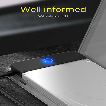 • LED Κατάστασης: Ένα κυκλικό LED δείχνει αν ο δίσκος είναι συνδεδεμένος (μπλε φως) ή σε χρήση (αναβοσβήνει).