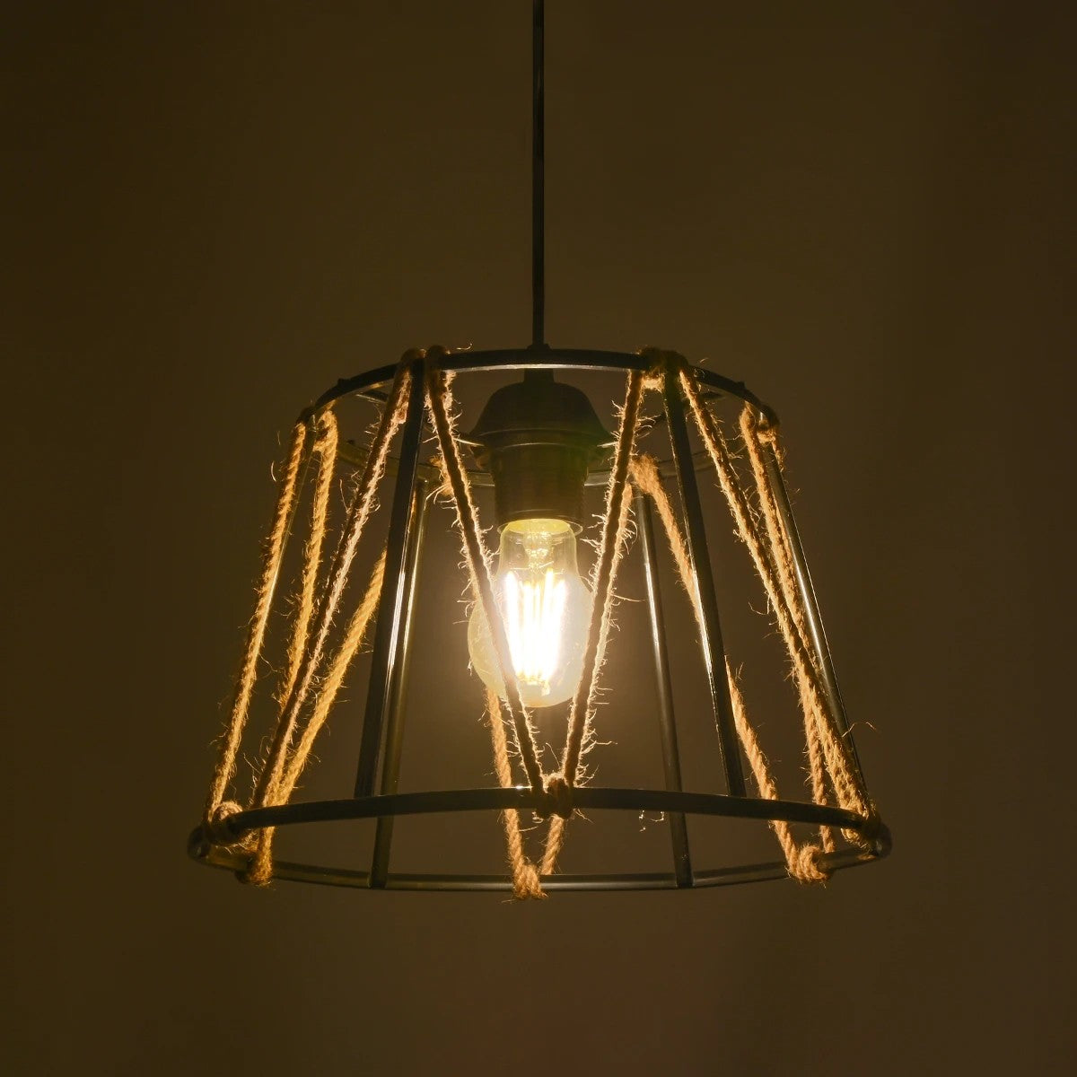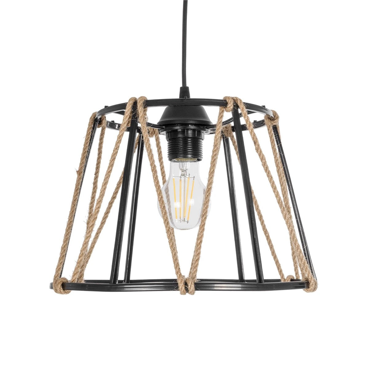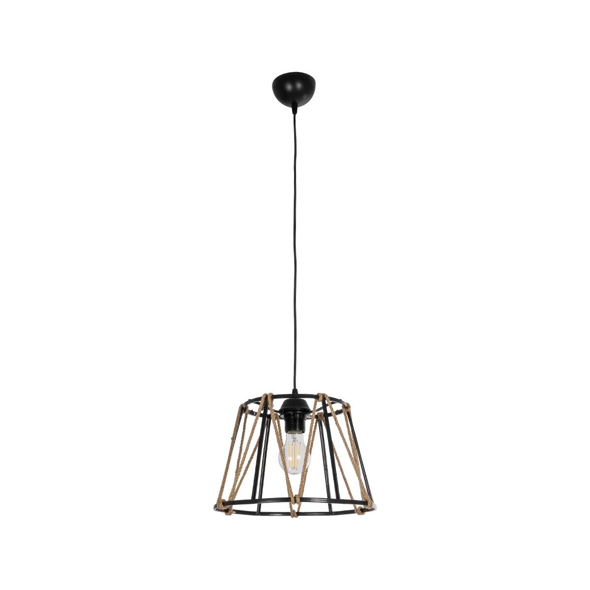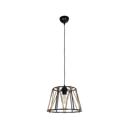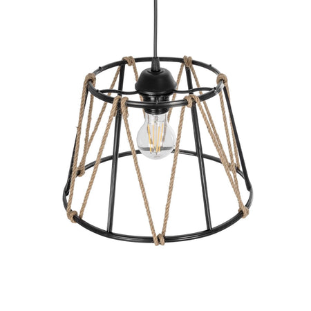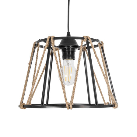 GLOBOSTAR® JUTE 203-0090 Μοντέρνο Κρεμαστό Φωτιστικό Οροφής με Ντουί 1 x E27 AC 220-240V IP20 - Μαύρο & Μπεζ - Μ30 x Π30 x Υ23cm