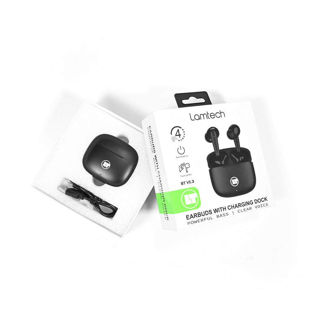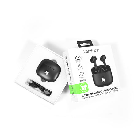 Lamtech Bluetooth 5.3 Tws Earphones With Charging Dock Black