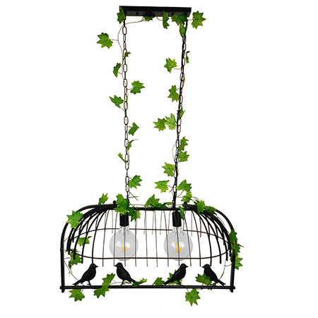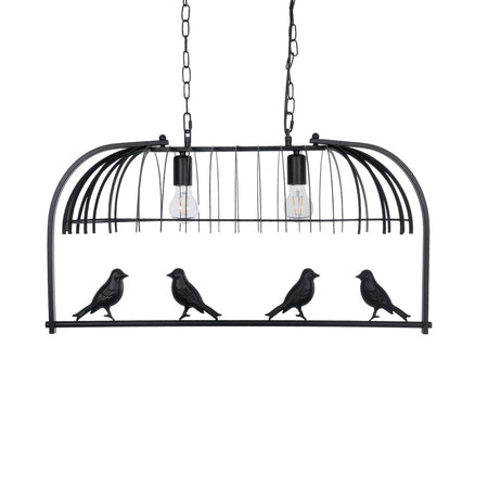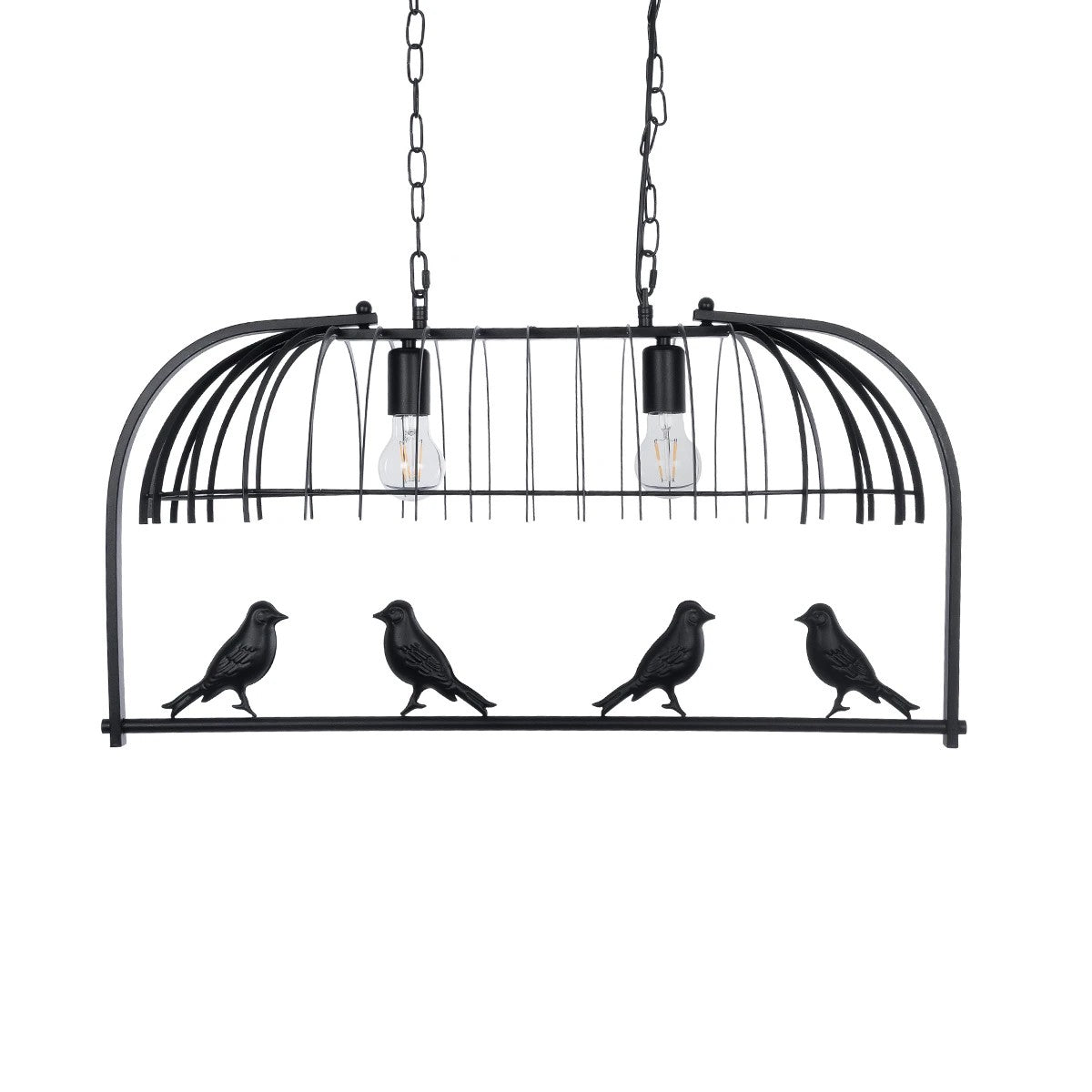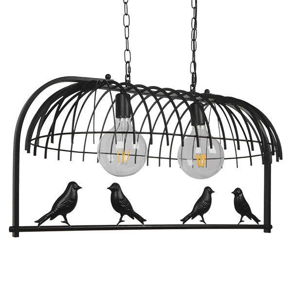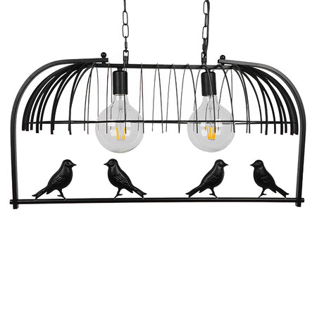 GloboStar® NEST 01643 Vintage Industrial Κρεμαστό Φωτιστικό Οροφής Δίφωτο Μαύρο Μεταλλικό Πλέγμα Μ73.6 x Π37.5 x Y38cm