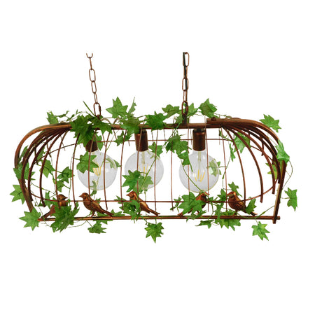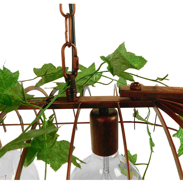GloboStar® NEST 01648 Vintage Industrial Κρεμαστό Φωτιστικό Οροφής Τρίφωτο Καφέ Σκουριά Μεταλλικό Πλέγμα Μ85.5 x Π37.5 x Y38cm