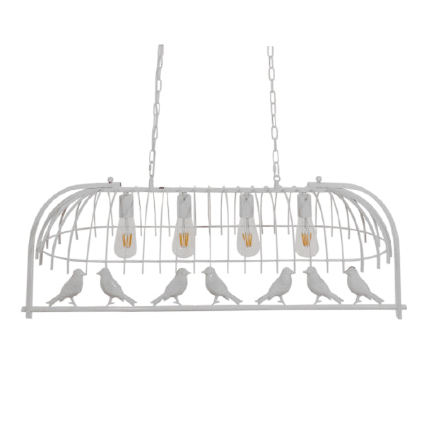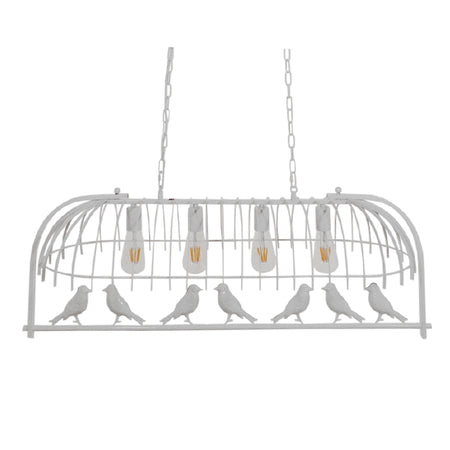 GloboStar® NIDUS 01403 Vintage Industrial Κρεμαστό Φωτιστικό Οροφής Πολύφωτο Λευκό Μεταλλικό Πλέγμα Μ105 x Π37 x Y36.5cm