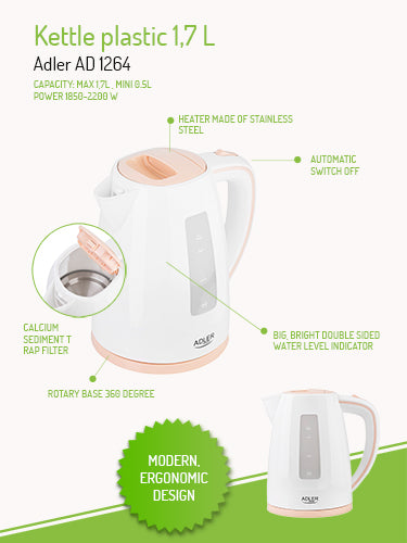 Adler Plastic Kettle 1,7 L White