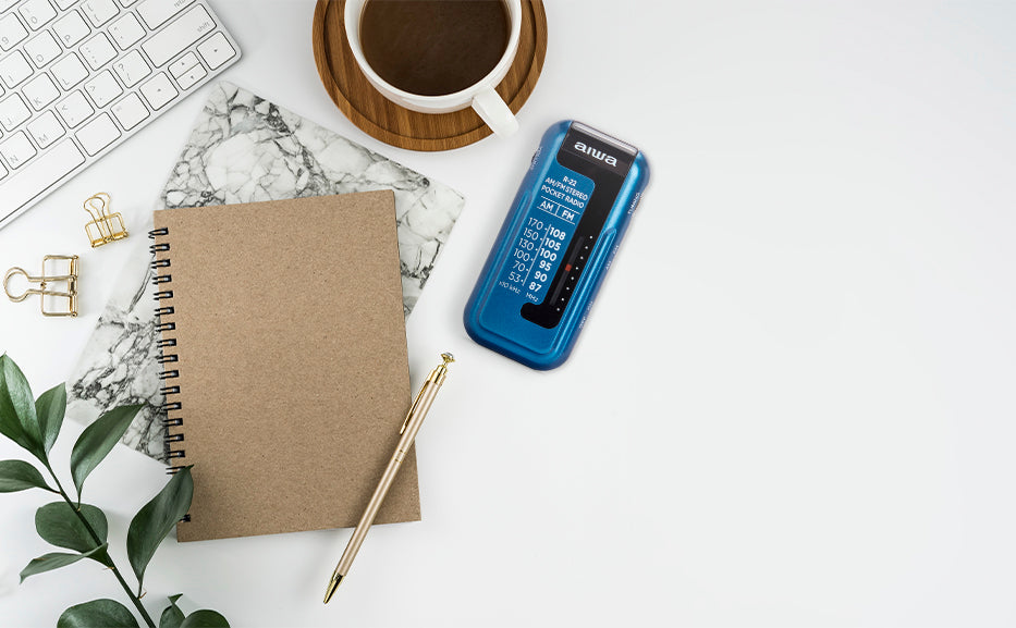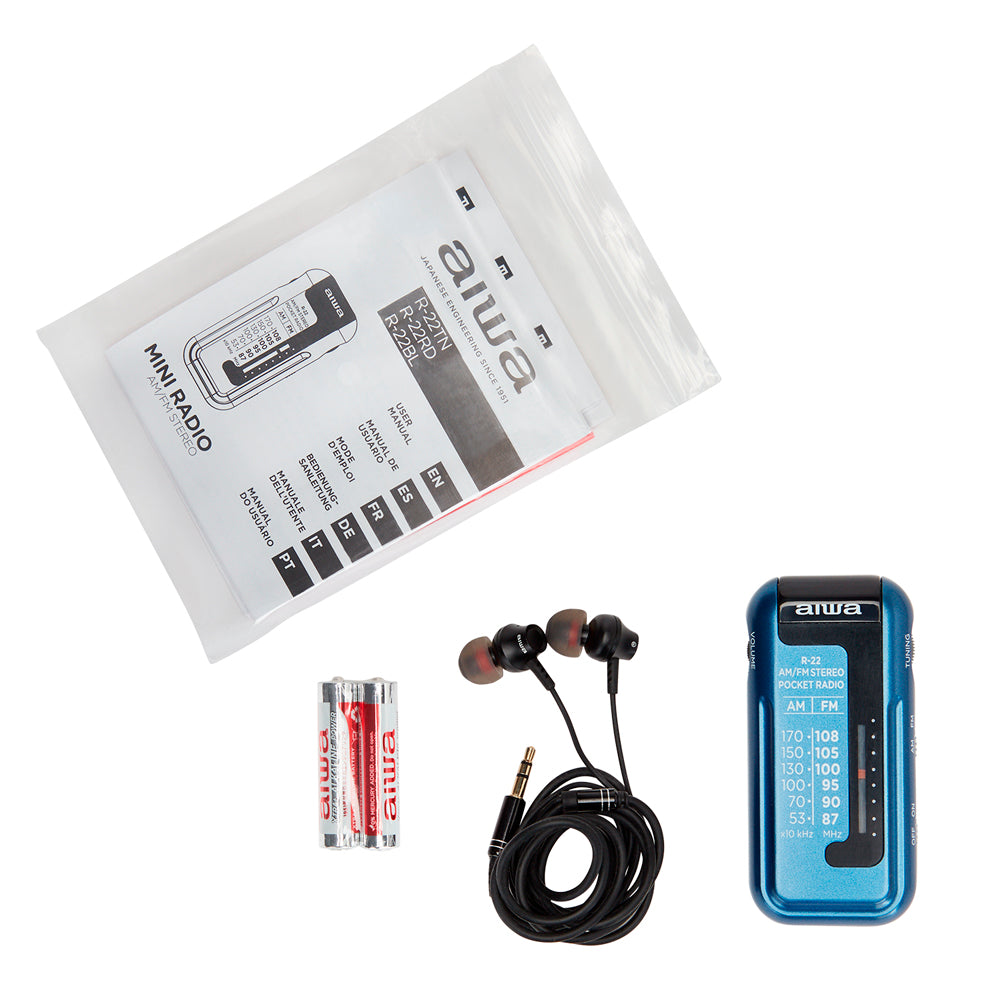 AIWA MINI POCKET RADIO WITH EARPHONES BLUE