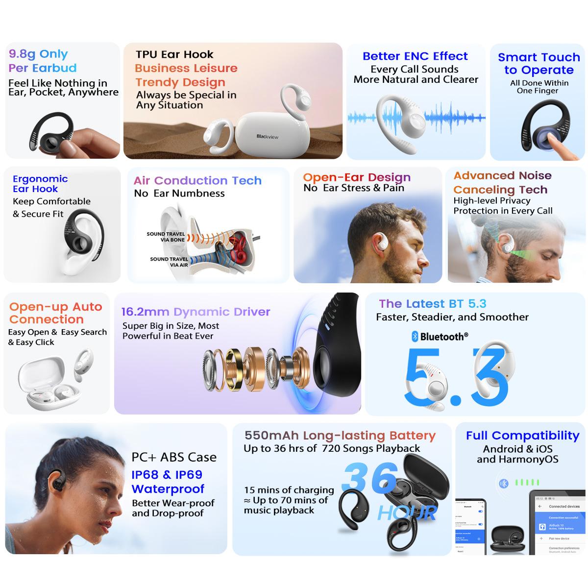 Blackview Bt5.3 Enc+Mic Noise Reduction Airbuds 10 With Charging Dock Black