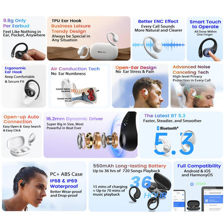 Διαθέτει επίσης γρήγορη και βολική φόρτιση, με τα ακουστικά και τη θήκη φόρτισης να χρειάζονται μόνο 1,4 και 1,5 ώρες για να φορτιστούν αντίστοιχα.Τα AirBuds10 είναι κατασκευασμένα για να αντέχουν στα στοιχεία της φύσης, με βαθμούς αντοχής στο νερό IP68 και IP69, εξασφαλίζοντας αξιοπιστία σε οποιοδήποτε περιβάλλον. Απολαύστε την απόλυτη ελευθερία και ευελιξία με τα AirBuds10, βελτιώνοντας την εμπειρία ήχου σας με ανώτερη ποιότητα ήχου, άνεση και ανθεκτικότητα.