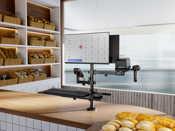 BRATECK βάση γραφείου για 2x οθόνες PMM-02LD, 17-32", με θέση για POS/printer/scanner/πληκτρολόγιο