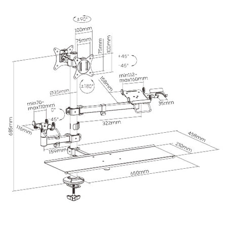 BRATECK βάση γραφείου PMM-02LD για 2x οθόνες 17"-32"/POS/πληκτρολόγιο