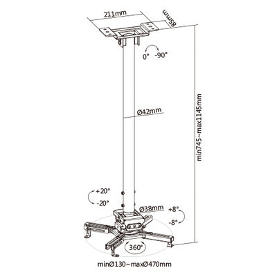 Η PRB-20-01L είναι μια βάση οροφής προτζέκτορα με περιστρεφόμενο άξονα 360° και δυνατότητα ρύθμισης γωνίας tilt, για την επίτευξη της ιδανικής γωνίας προβολής.