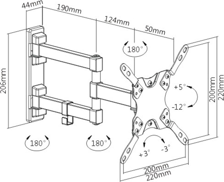 Παρέχει μεγάλη ευελιξία, καθώς η επέκταση του βραχίονα στα 36cm από τον τοίχο, σας επιτρέπει να γείρετε και να περιστρέφετε την οθόνη προς οποιαδήποτε κατεύθυνση, ώστε να βλέπετε τέλεια από οποιοδήποτε σημείο του δωματίου. Διαθέτει ενσωματωμένο σύστημα διαχείρισης καλωδίων και διακοσμητικά καλύμματα, για μια κομψή και τακτοποιημένη προσθήκη στο χώρο. Τέλος, το ενσωματωμένο αλφάδι, που παρέχει δυνατότητα περιστροφής έως 3° δεξιόστροφα και αριστερόστροφα, διασφαλίζει ότι η οθόνη είναι εντελώς ίσια.