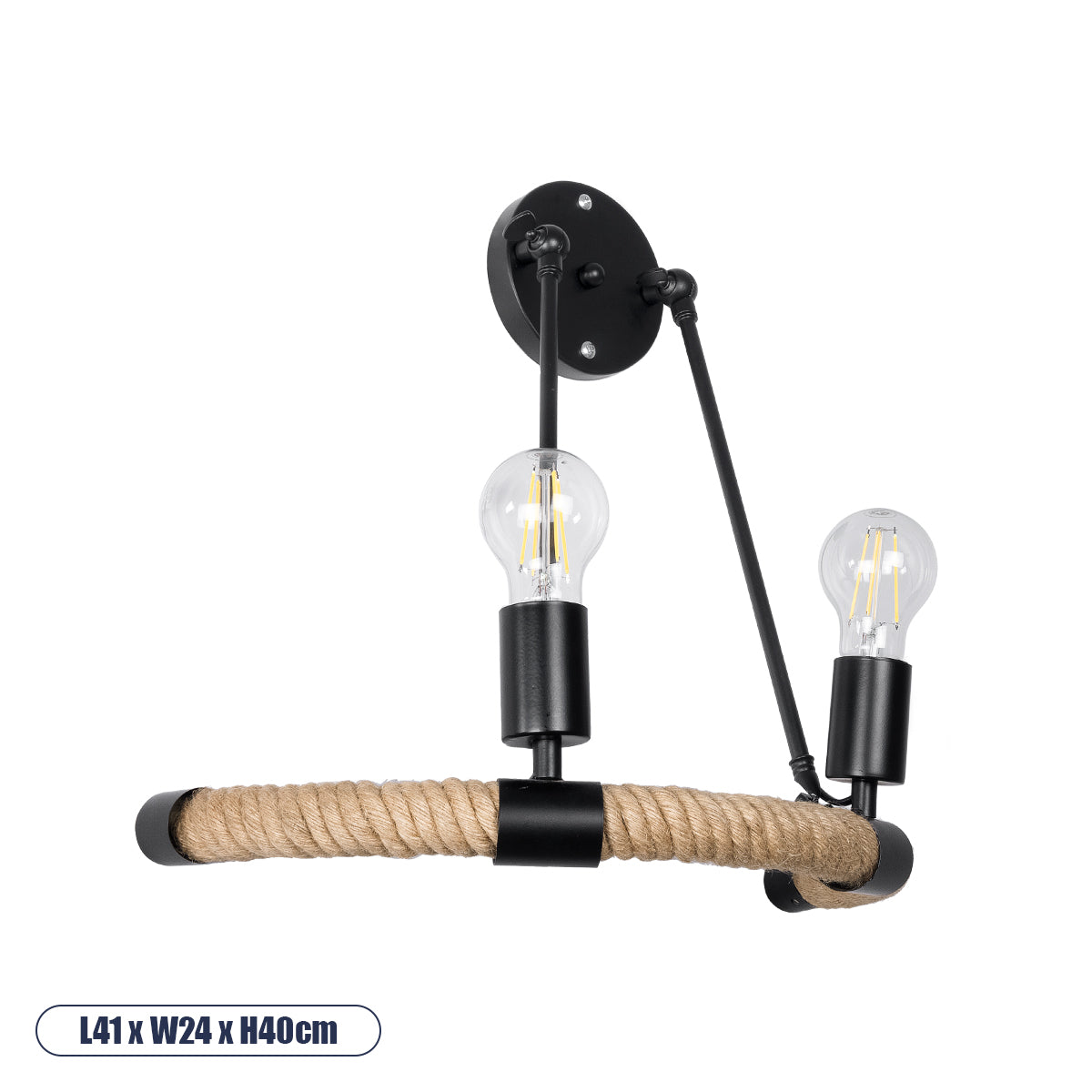 GLOBOSTAR® CROWN 01002 Vintage Φωτιστικό Τοίχου - Απλίκα με Ντουί 2 x E27 AC 220-240V IP20 - Μαύρο & Μπεζ - Μ41 x Π24 x Υ40cm