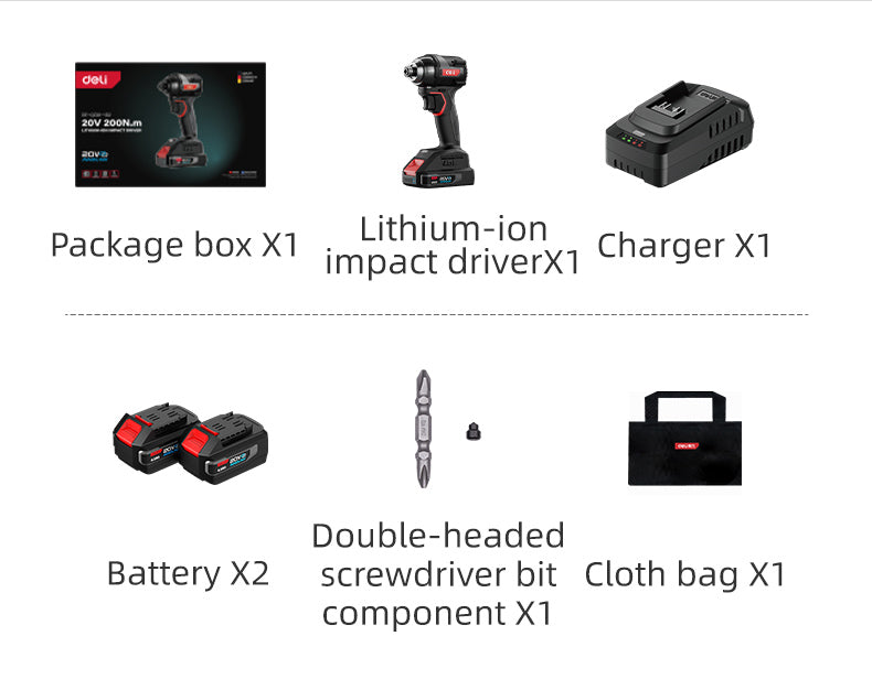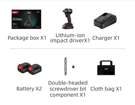 DELI παλμικό κατσαβίδι μπαταρίας DE-QZ20-1D2, Brushless, 20V, 2x 2Ah, 200N.m