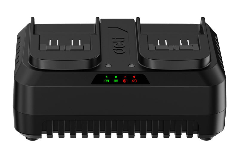 Διαθέτει δύο θέσεις φόρτισης, προσφέροντας ταυτόχρονη φόρτιση δύο μπαταριών, εξοικονομώντας χρόνο και αυξάνοντας την αποδοτικότητα στην εργασία σας.