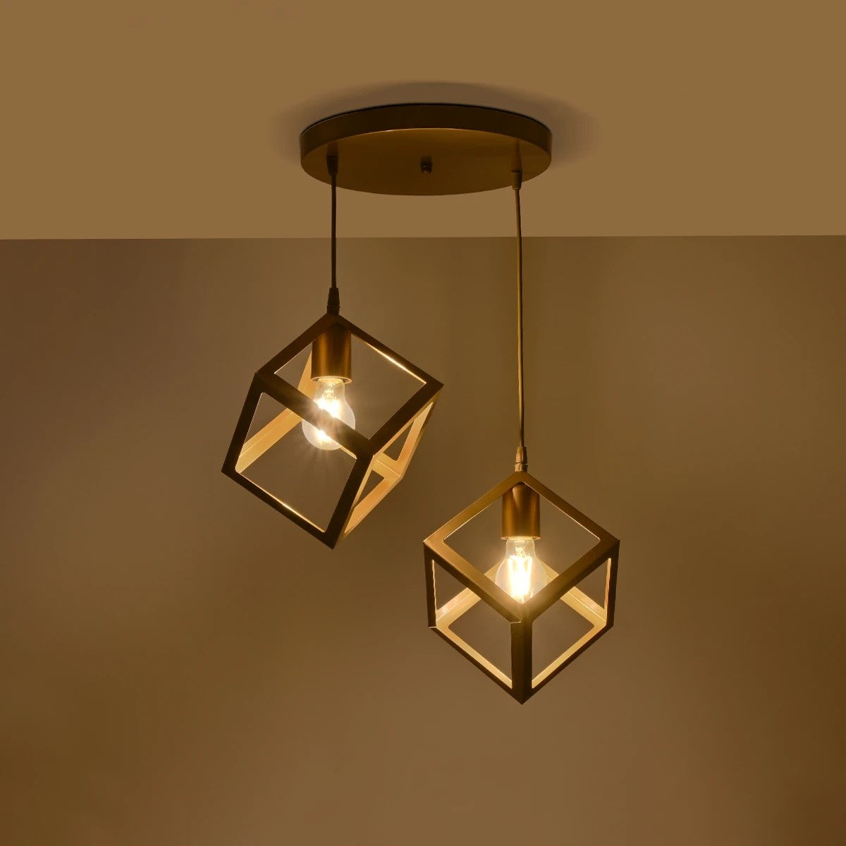 GLOBOSTAR® DISE 201-0056 Μοντέρνο Κρεμαστό Φωτιστικό Οροφής με Ντουί 2 x E27 AC 220-240V IP20 - Χρυσό - Μ50 x Π30 x Υ50cm